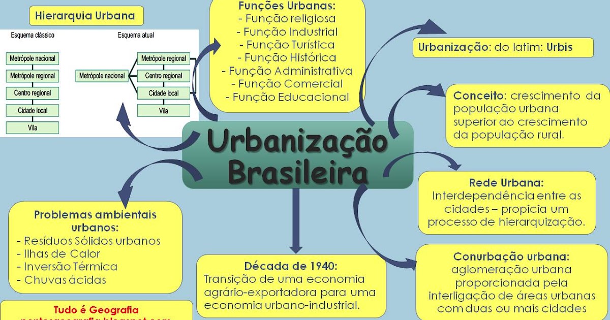 URBANIZAÇÃO BRASILEIRA Mapa mental, Urbanização, Geografia
