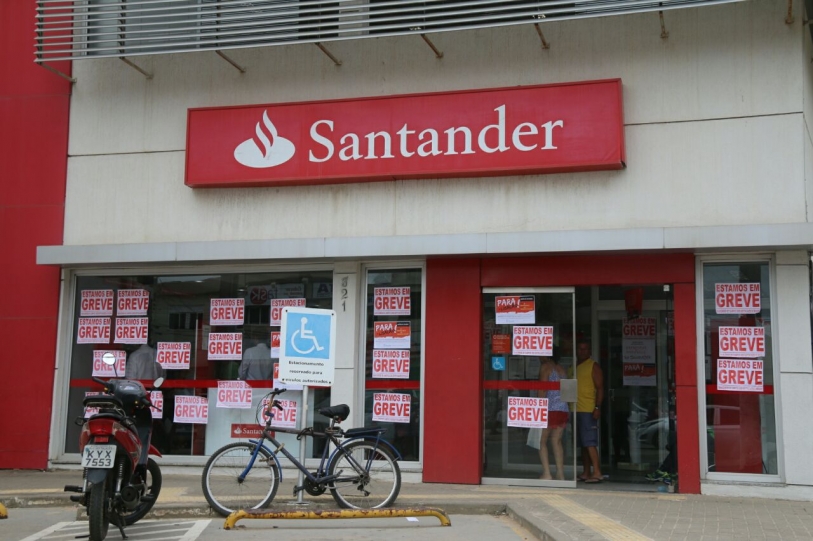 Agências do Santander fechadas e com aviso de greve Folha1 Economia