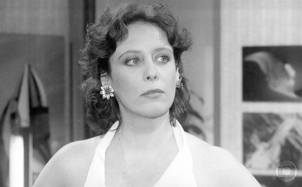 Elizabeth Savalla usou permanente e adereços nos cabelos na novela De Quina Pra Lua, de 1985