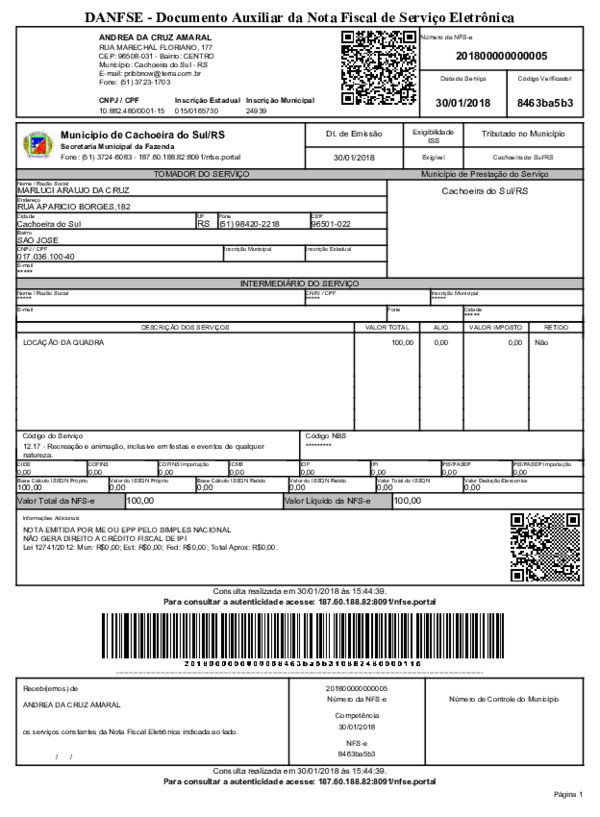 (PDF) DANFSE Documento Auxiliar da Nota Fiscal de Serviço Eletrônica TOMADOR DO SERVIÇO