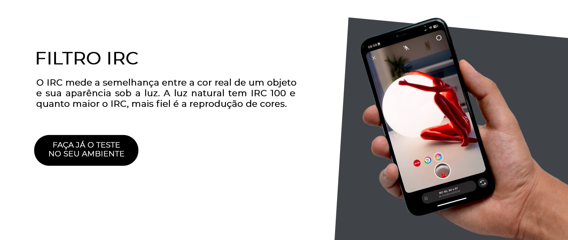 A LLUMM, especialista em iluminação de alta potência e iluminação decorativa, te explica! IRC é a escala que avalia o quanto uma fonte de luz artificial reproduz com fidelidade as cores dos objetos iluminados e o quanto esse resultado se assemelha a uma fonte de luz ideal, tendo a luz do sol como referência. O valor é percentual e varia.