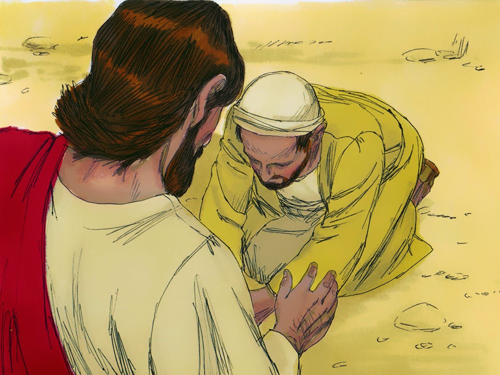 Jesus cura o cego Bartimeu - Jesus e os discípulos chegaram à cidade de Jericó. Quando ele estava saindo da cidade, com os discípulos e uma grande multidão, encontrou um cego chamado Bartimeu, filho de Timeu. O cego estava sentado na beira do caminho, pedindo esmola. Quando ouviu alguém dizer que era Jesus de Nazaré que estava passando, o cego começou a gritar: — Jesus, Filho de Davi.