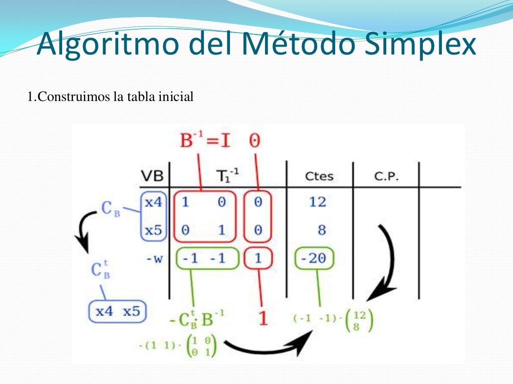 A continuación, vamos a detallar cada uno de los pasos a profundidad: 1. Definir el problema en la forma estándar y generar matriz. Un problema de programación lineal tiene la siguiente forma: Donde x 1, x 2. x n son las variables del problema. Antes de llevar nuestro modelo a la forma estándar debemos verificar que todas las.
