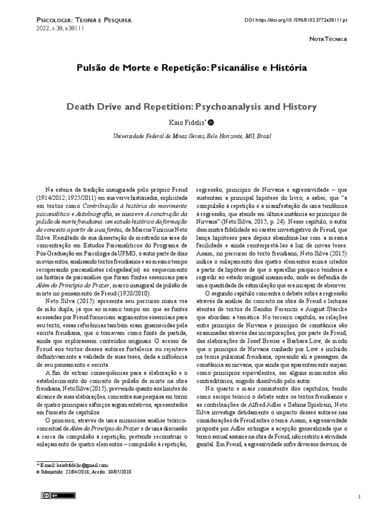 (PDF) O Desenvolvimento do Conceito de Pulsão de Morte na Obra de Freud