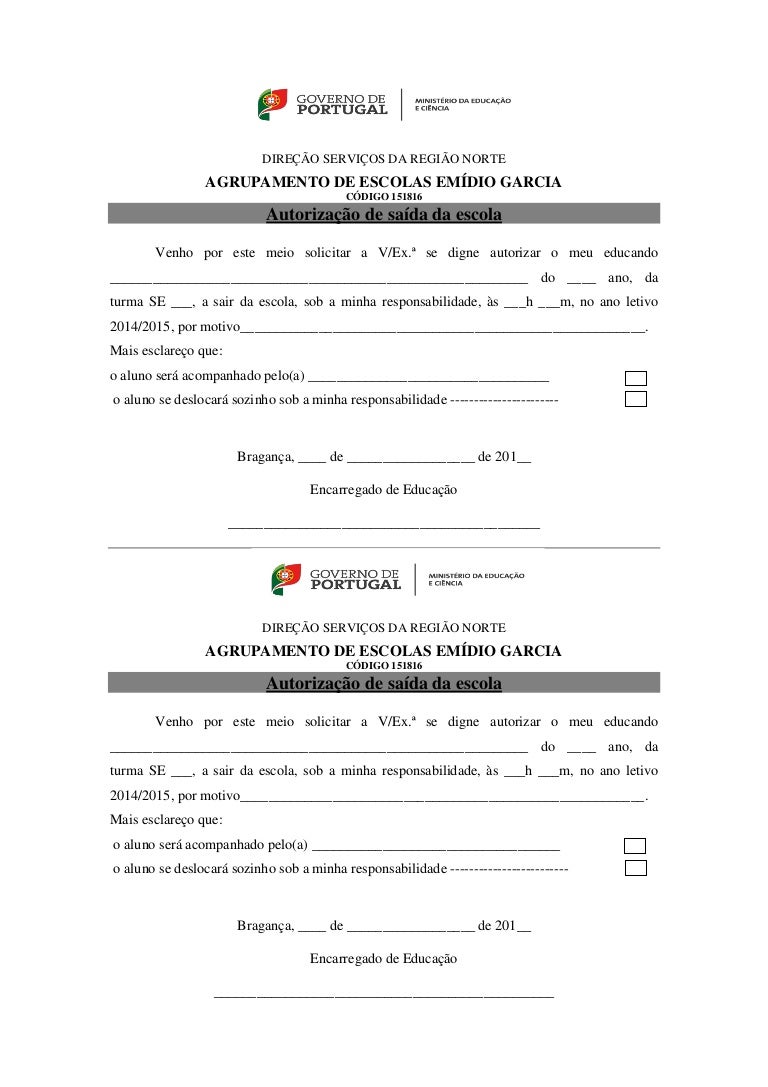 Sobre Bilhete De Autorizacao Para Sair Da Escola Popular