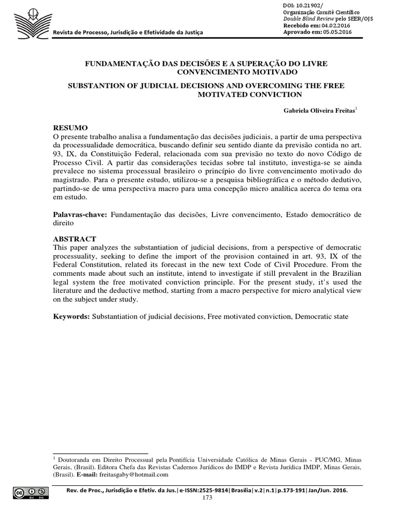 (PDF) A APLICABILIDADE DO PRINCÍPIO DO LIVRE CONVENCIMENTO MOTIVADO EM CONFRONTAÇÃO COM O