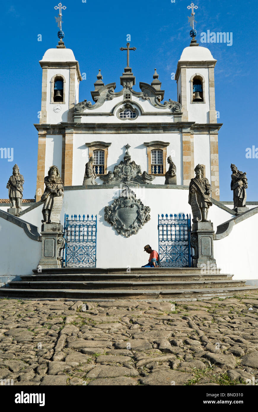 The Sanctuary of Bom Jesus de Matosinhos is an architectural and landscape complex made up of a church, a churchyard and six attached chapels, located in the Brazilian municipality of Congonhas, in the state of Minas Gerais. The church is an important example of Brazilian colonial architecture, with a rich interior decoration in gilded woodwork.