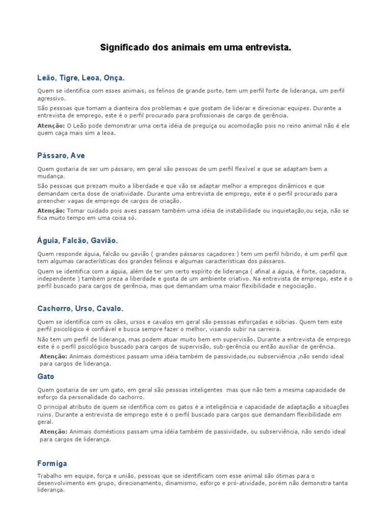 Significado Dos Animais em Uma Entrevista PDF Cães Gatos